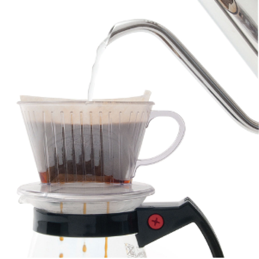 “Wedge-shaped dripper with three holes in the bottom and ribs on the inner wall. Its design keeps the filter from sticking to the wall and the bottom of dripper, also encourages a smoother extraction.